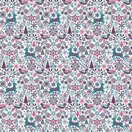 Liberty Fabrics transports us to a magical winter wonderland of prancing reindeers and glittering stars, with A Woodland Christmas. Charming scenes unfold within an enchanted forest where snowflakes fall around a Christmas cottage, and brightly coloured baubles hidden among the evergreen firs complement traditional designs of holly and berries. Pops of metallic gold and silver twinkle throughout the collection for an extra sprinkling of festive magic. A Woodland Christmas has been designed in two colour stories. The first is a traditional Christmas palette of ruby reds, forest greens and warm creams complemented with hints of metallic tones. The second colour story is inspired by the northern lights, painting a picture of frosty blues, jade greens and bright mustards with pops of silver metallic against an inky midnight sky. We hope this collection inspires you to start crafting your own magical Christmas creations!